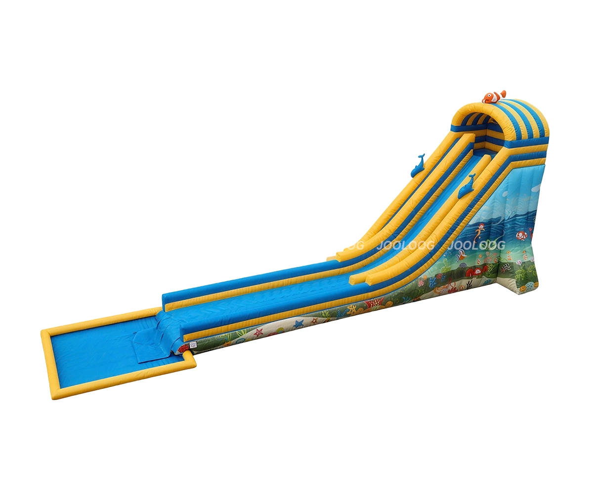 Discuss options for swimming pools ("mini inflatable water park") versus open water ("giant inflatable water park" and "medium inflatable water park").